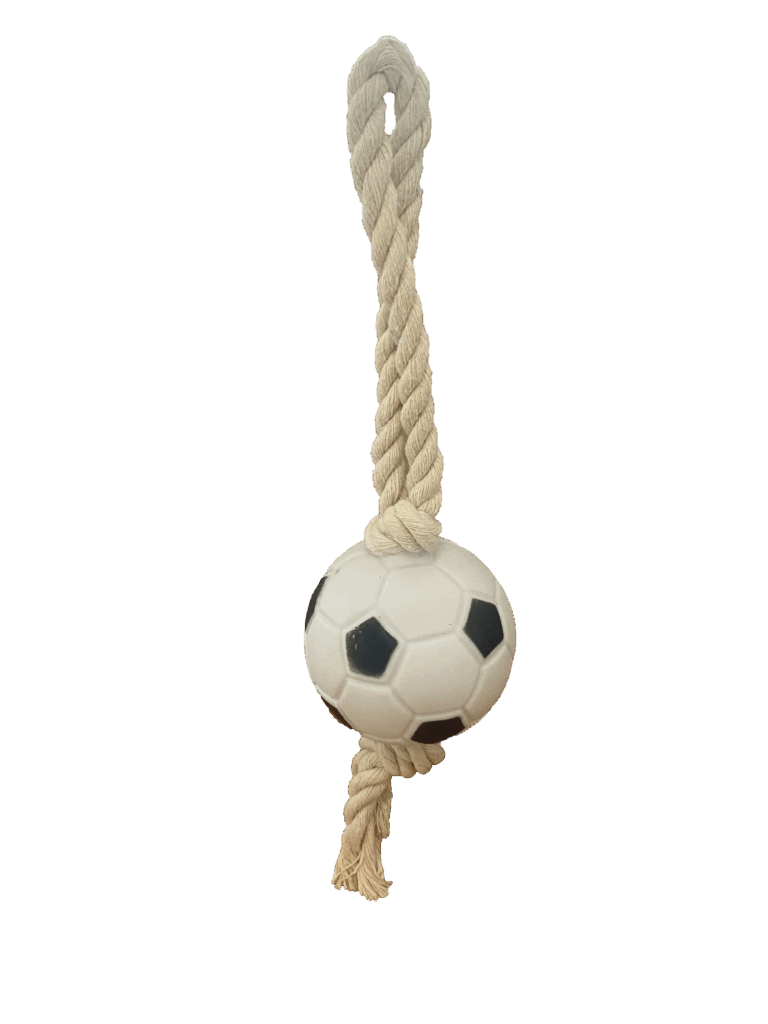 Balle “ballon de foot” avec corde pour chien.